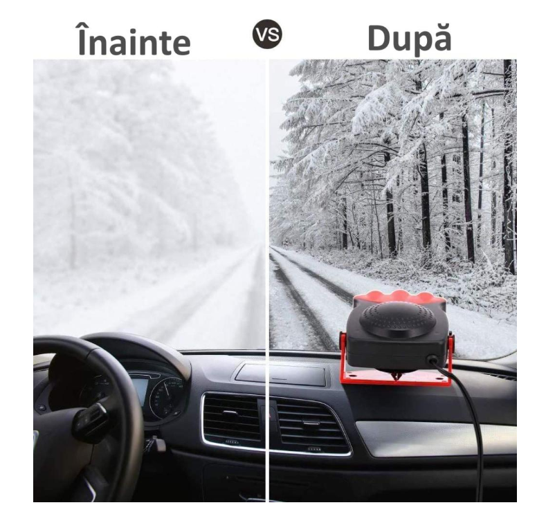 Pur si simplu conectati dispozitivul la bricheta. Avantajul este ca nu trebuie sa astepti ca motorul vehiculului sa se incalzeasca, astfel incat sa poata sufla aer cald.