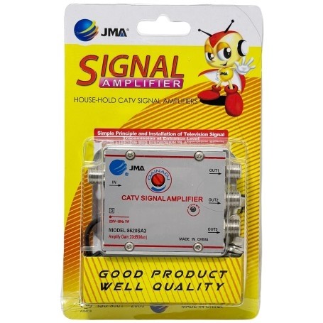 Amplificatorul de semnal TV cu 3 iesiri are control automat al amplificarii, semnalul de iesire fiind livrat in gama optima de sensibilitate a televizoarelor.