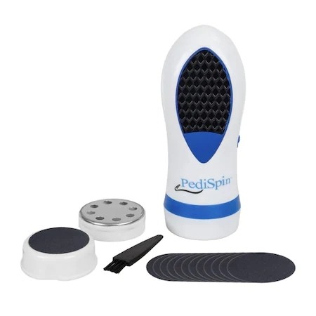 Conceput special pentru indeparatarea stratului intarit sau crapat de piele de pe calcaie si degete, aparatul Pedi Spin asigura o ingrijire eficienta a picioarelor in cel mai scurt timp.