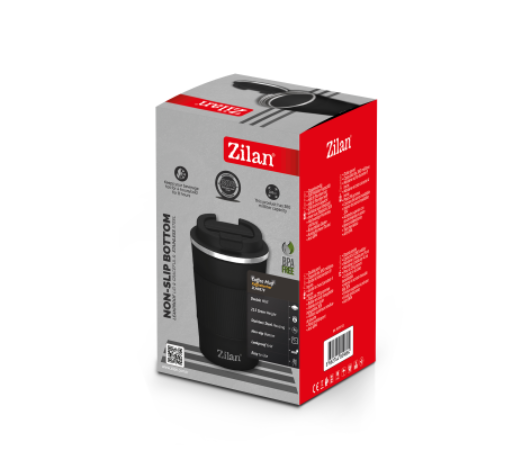 Cana de cafea Floria ZLN9878 tip termos este de culoarea negru si are o capacitate de 380ml. Termosul beneficiaza de pereti dublii prin intermediul care reuseste sa mentina temperatura rece pana la 8 ore, de asemenea mentine temperatura calda pana la 4 ore. Termosul este usor de spalat, are un capac etans si partea de jos a produsului este antiderapanta. Carcasa si interiorul este din otel inoxidabil.