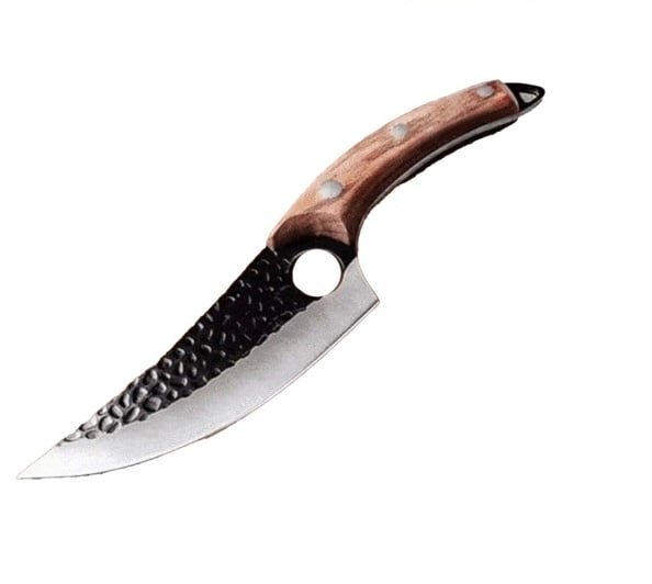 Un element distinctiv al acestui cuțit este gaura de precizie, sculptată cu laser pentru degetul arătător, care oferă un control superior și facilitează manevrarea precisă. Mânerul, realizat din lemn de stejar premium, asigură o aderență perfectă și confort sporit în timpul utilizării.