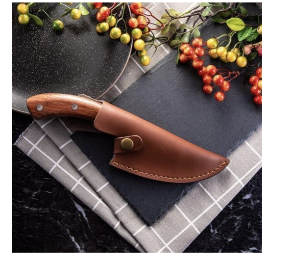 Cutit profesional Tazaki cu HUSA DIN PIELE, Otel Japonez HRC 60 calire manuala, maner lemn dur