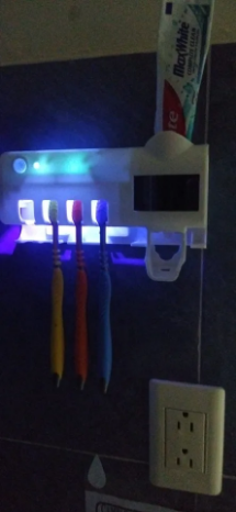 Agatati periuta de dinti in suport dupa ce este scursa de apa, pentru a nu afecata lampa UV.