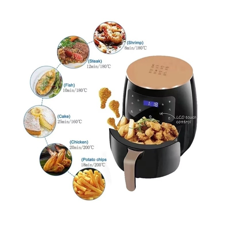 Friteuză electrică cu aer cald și afișaj digital – gătire rapidă și sănătoasă, capacitate 4L, 1400–1600W, negru