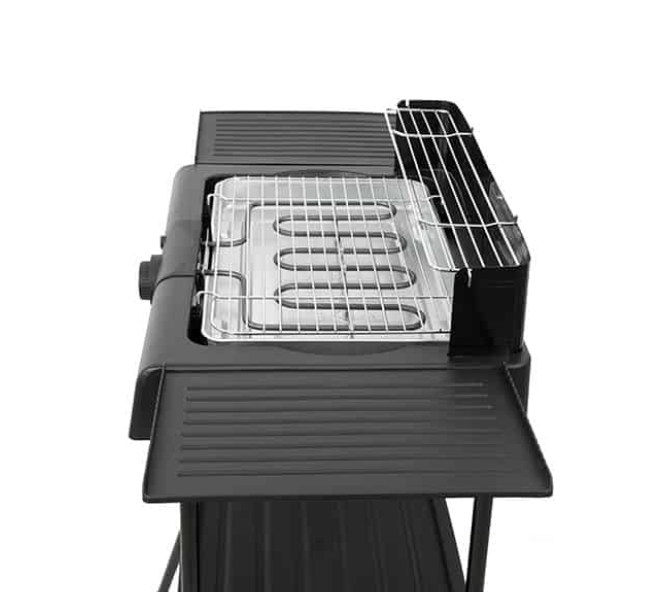 Gratarul electric dispune de o tava pentru apa pentru a impiedica uscarea si lipirea produselor. Nu scoate fum, deci este recomandat in spatii inchise.
