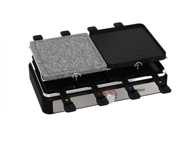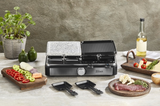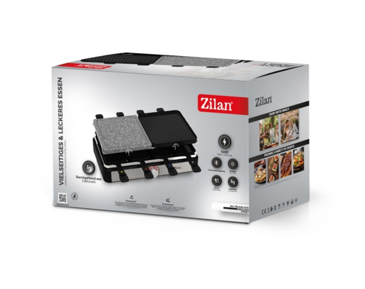 Pregatiti cele mai gustoase feluri de mancare cu acest Raclette&Grill Zilan. Acesta combinatie nu numai ca are o placa reversibila din aluminiu turnat sub presiune cu strat antiaderent, ci si o placa reversibila pentru gratar din piatra. Alegeti sa faceti gratar, sa coaceti legume, sau raclette toate in acelasi timp!