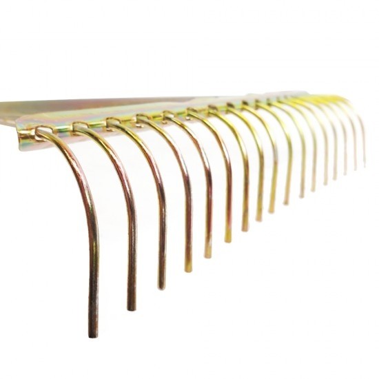 Grebla de frunze fara coada cu 18 dinti dispusi sub forma de evantai.