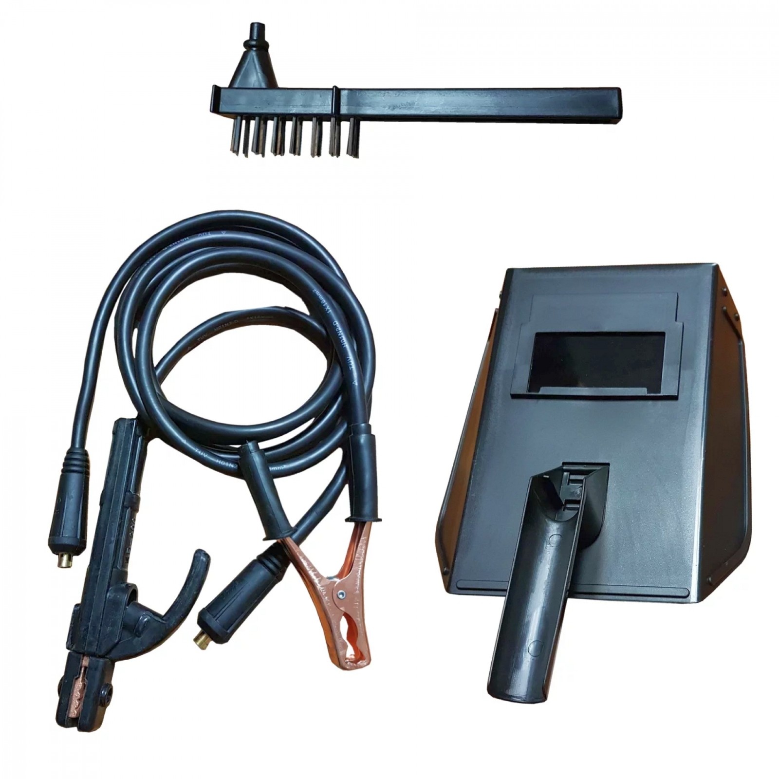Pachetul include aparatul de sudura, masca de protectie, cabluri si perie cu ciocanel.