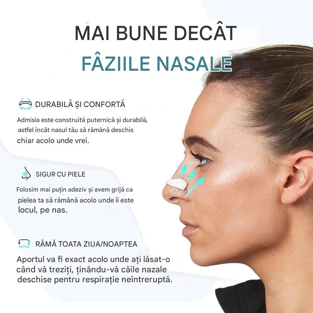 - Reduce sforăitul prin dilatarea căilor nazale