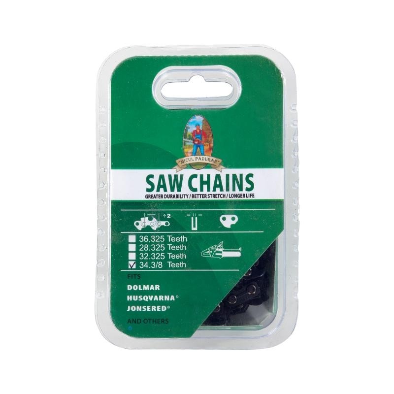 Lant drujba Micul Padurar .3/8 34 dinti MPPCaracteristici:•Numar dinti: 34•Numar pinteni: 68•Pas lant: 3/8Compatibil cu modelele de motofierastrau:•Husqvarna;•Oregon.