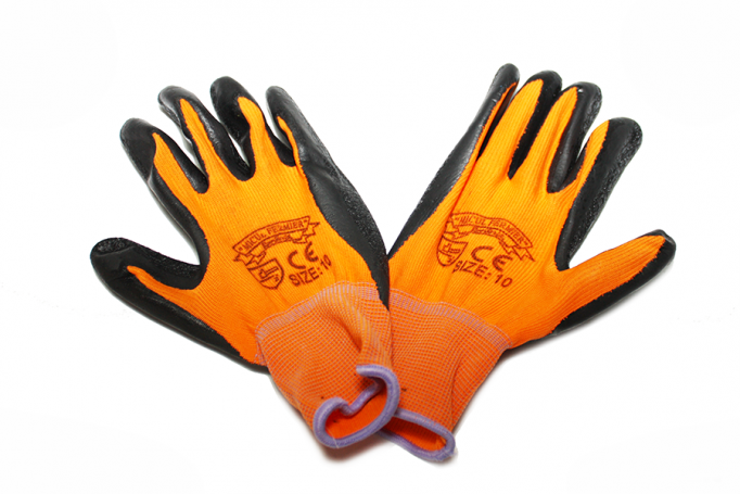 Manusi protectie din material textil si cauciuc, pentru gradinarit, culoare portocaliu/negru (diferite culori), Micul Fermier GF-1118