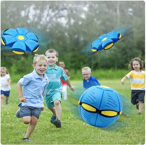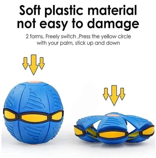 Mingea se transforma dintr-un disk intr-o bila rotunda, si invers. Este simplu de utilizat, foarte distractiv si te pune in miscare. Joaca cu mingea a fost reinventata, iar cheful tau de a o scoate afara renaste cu mingea disk zburatoare.Mingea disc Zburatoare vine cu o noua forma de joaca cu mingea, la propriu!
