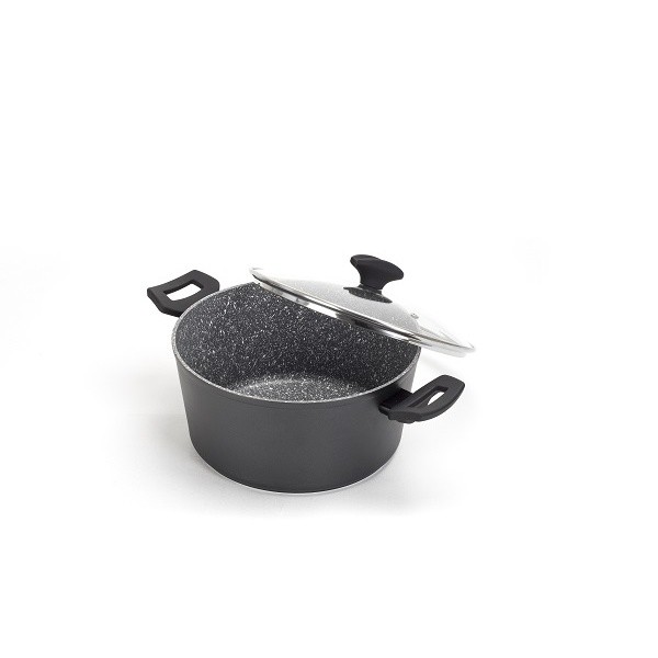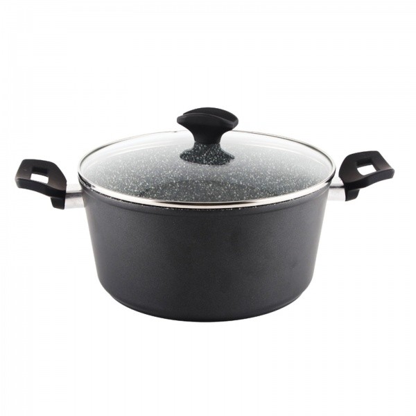 Oala din aluminiu Zilan 24cm cu interior de granit si capac sticla termorezistenta.