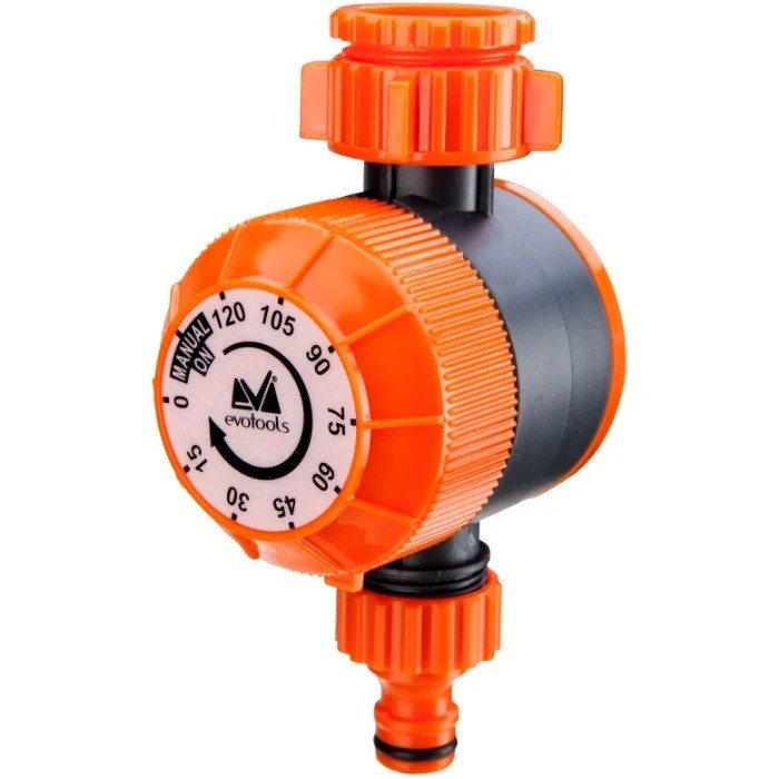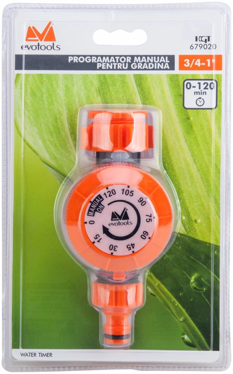 Programatorul manual pentru grădină cu durată de până la 120 de minute este o soluție practică pentru controlul irigării în grădină, gazon, seră sau curte. Funcționează fără baterii sau curent electric, fiind ușor de utilizat și extrem de fiabil.