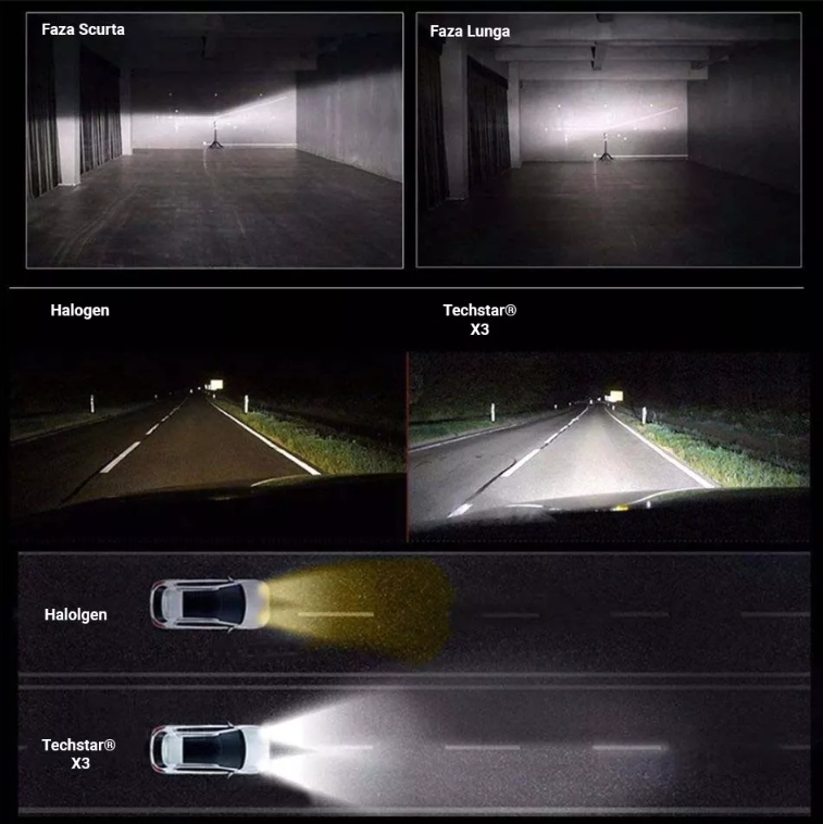Ledurile auto Techstar cu lumina LED de nuanta 6500k Alb Rece ofera aspectul modern similar unei masini noi echipata cu faruri LED