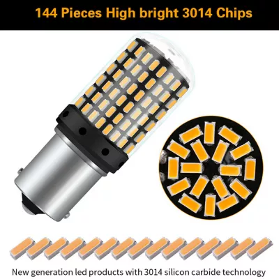 Setul de 2 becuri LED galbene P21W (Pozitii) cod 1156 cu anulator reprezintă o actualizare excelentă pentru sistemul de iluminare al vehiculului tău.Aceste becuri LED galbene oferă o lumină strălucitoare și clară, asigurând o vizibilitate îmbunătățită în timpul condusului și adăugând un aspect distinct mașinii tale.