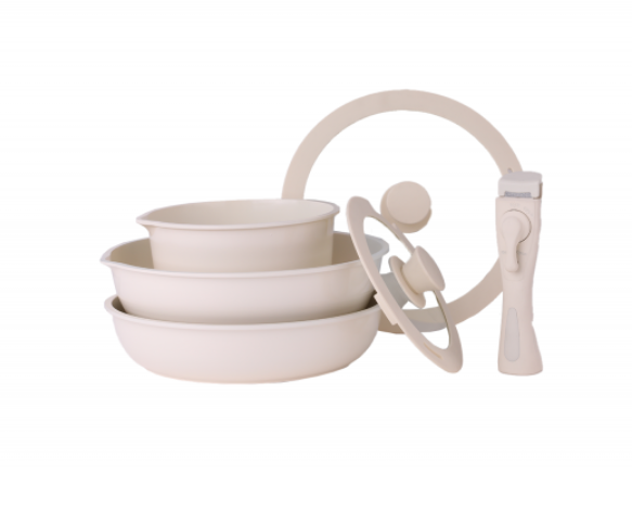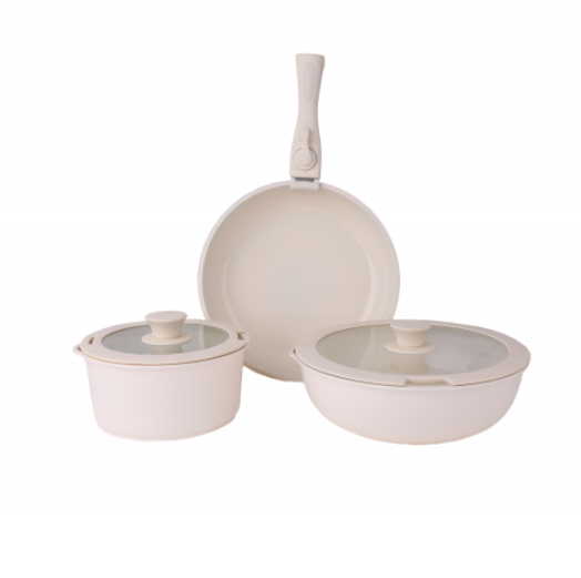 Vasele sunt construite din 5 straturi de material ( Ceramica, Miez de aluminiu si otel inoxidabil ). Vasele beneficiaza de acoperire non-toxica ( PFAS FREE, PFOA FREE, PFOS FREE si fara PTFE). Vasele din pachet sunt compatibile cu utilizarea in cuptor dar temperatura trebuie sa fie de maxim 280 de grade C.Curatarea si spalarea vaselor se realizeaza usor datorita materialelor de calitate si avand compatibilitatea de a le spala la masina de spalat vase.