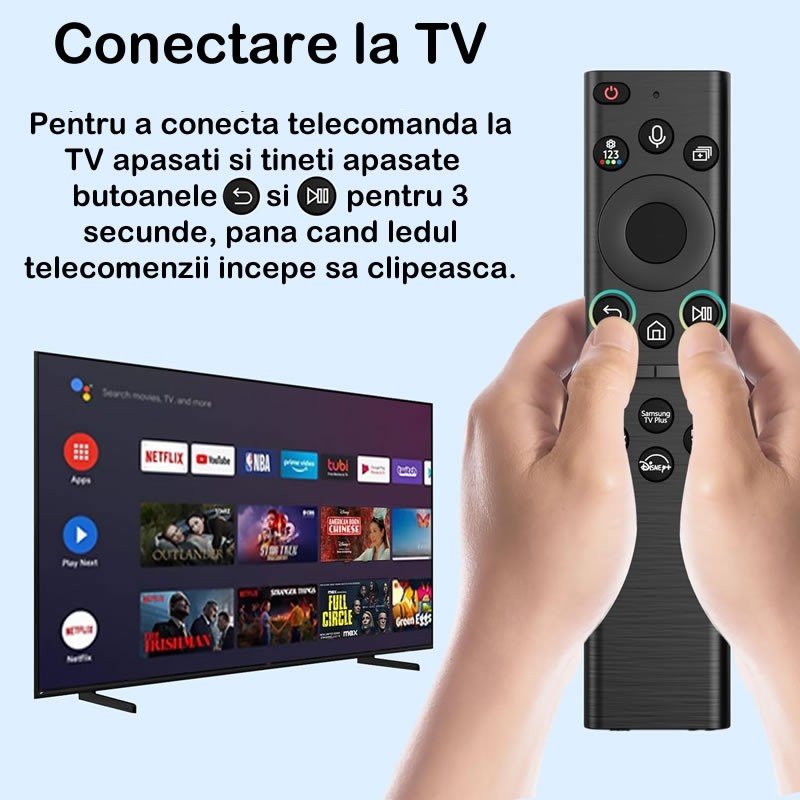 Modele de telecomenzi Samsung compatibile: BN59-01259E, BN59-01312B/H/G, BN59-01312F, BN59-01312M, BN59-01312A, BN59-01199F, BN59-01259B, BN59-01260A, BN59-01555266A, BN59-01241a, BN59-01301A.