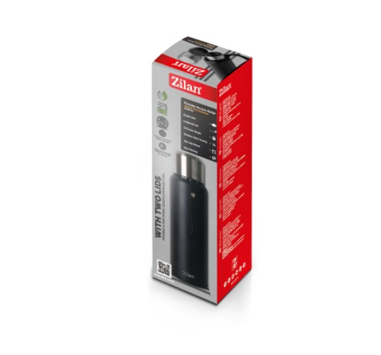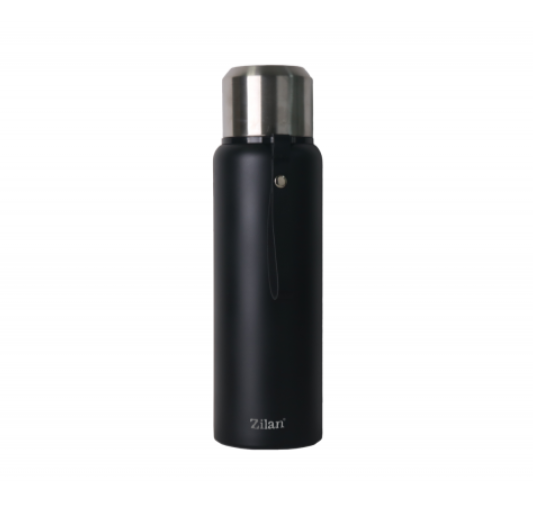 Termosul portabil Zilan ZLN9914 este de culoare neagra si dispune de capacitatea 1000ml ( 1L ), acesta cantareste 540 de grame si este confectionat din otel inoxidabil. Termosul are peretii dublii care ajuta sa mentina rece bautura pana la 24 de ore, de asemenea peretii dublii ajuta pentru a mentine calda bautura pana la 12 ore. Capacul este etans, termosul mai detine si o sfoara din poliuretan pentru a fi usor de tinut pentru atunci cand este cald. Partea de jos a produsului este antiderapanta, per total termosul este unul ideal daca aveti nevoie de o cantitate mai mare de lichide pe care sa le transportati sau depozitati cat mai usor cu temperaturile dorite.