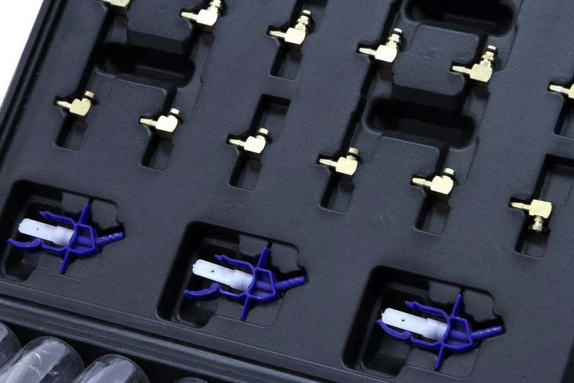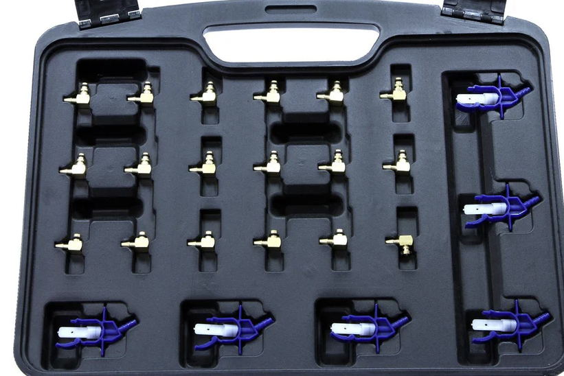 Trusa testare injectoare common-rail 31 piese poate testa până la 6 injectoare în același timp.